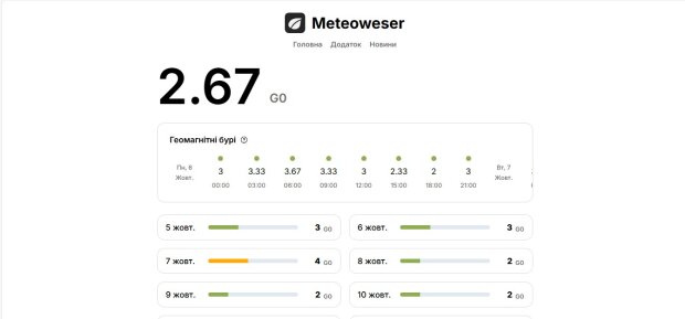 6 жовтня магнітні бурі не очікується – Meteoweser #магнітнібурі #погода #україна #жовтень #земля