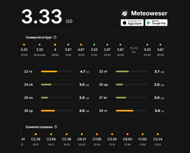 Зверніть увагу! Прогнози магнітних бур можуть змінюватися, оскільки дослідники сонячної активності оновлюють свої дані кожні три години. Тому рекомендуємо регулярно слідкувати за змінами.