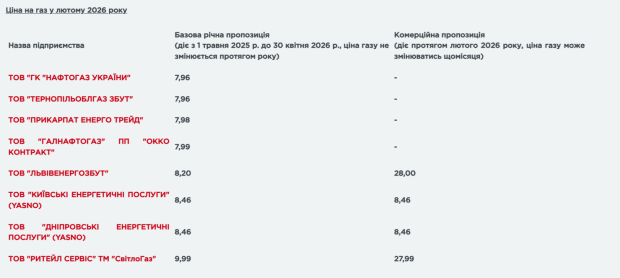 Постачальники газу оприлюднили свої цінники на лютий 2026 року. Річні тарифи традиційно без змін, а от місячні у порівнянні із січнем виросли на понад 2 гривні. Як зазначає Стіна, про це йдеться на сайті gazpravda.