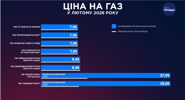 Нині на ринку присутні 8 газопостачальних компаній. 4 постачальники пропонують лише річну ціну, ще 4 – і річну, і місячну змінну.
