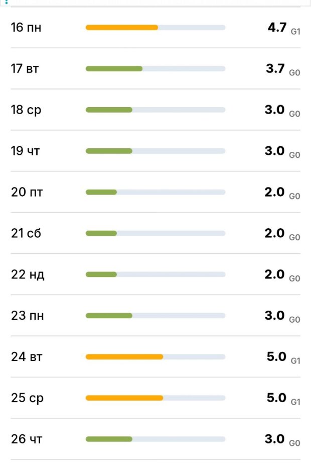 Зверніть увагу! Прогнози магнітних бур можуть змінюватися, оскільки дослідники сонячної активності оновлюють свої дані кожні три години. Тому рекомендуємо регулярно слідкувати за змінами.