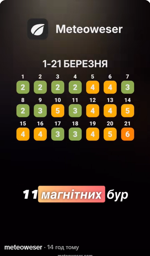 З 1 по 21 березня очікується щонайменше 11 магнітних бур – Meteoweser #магнітнібурі #погода #новини #україна #березень