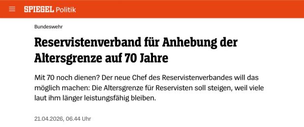 - Поточні обмеження: Зараз закон про солдатів (Soldatengesetz) забороняє будь-яку службу в резерві після досягнення 65-річного віку, що не дозволяє досвідченим фахівцям (наприклад, лікарям) брати участь у навчаннях чи заходах Бундесверу.