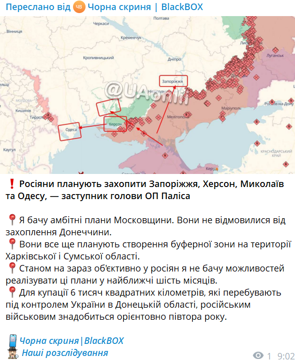 Россияне планируют захватить Запорожье, Херсон, Николаев и Одессу , - заместитель председателя ОП Палиса.