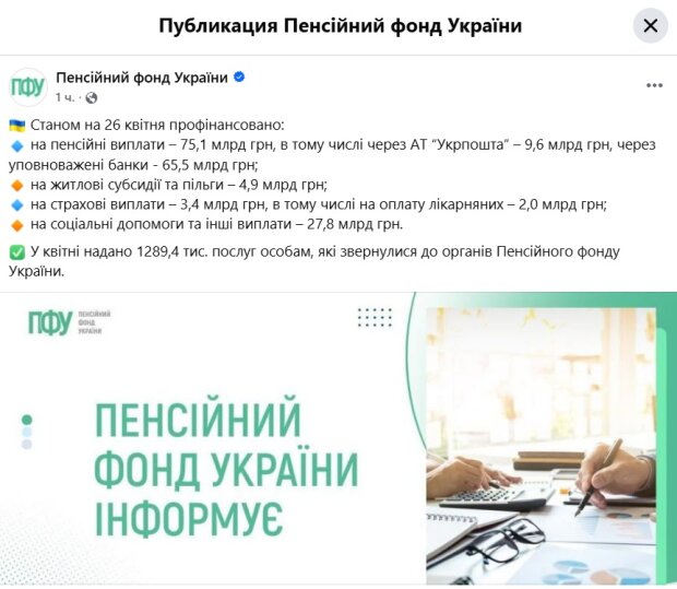 Завершено финансирование пенсий за апрель 2026 года, на пенсионные выплаты направлено 3045,1 млн. грн. О деталях, читайте дальше в материале, Стена, ссылающаяся на информацию ПФУ .